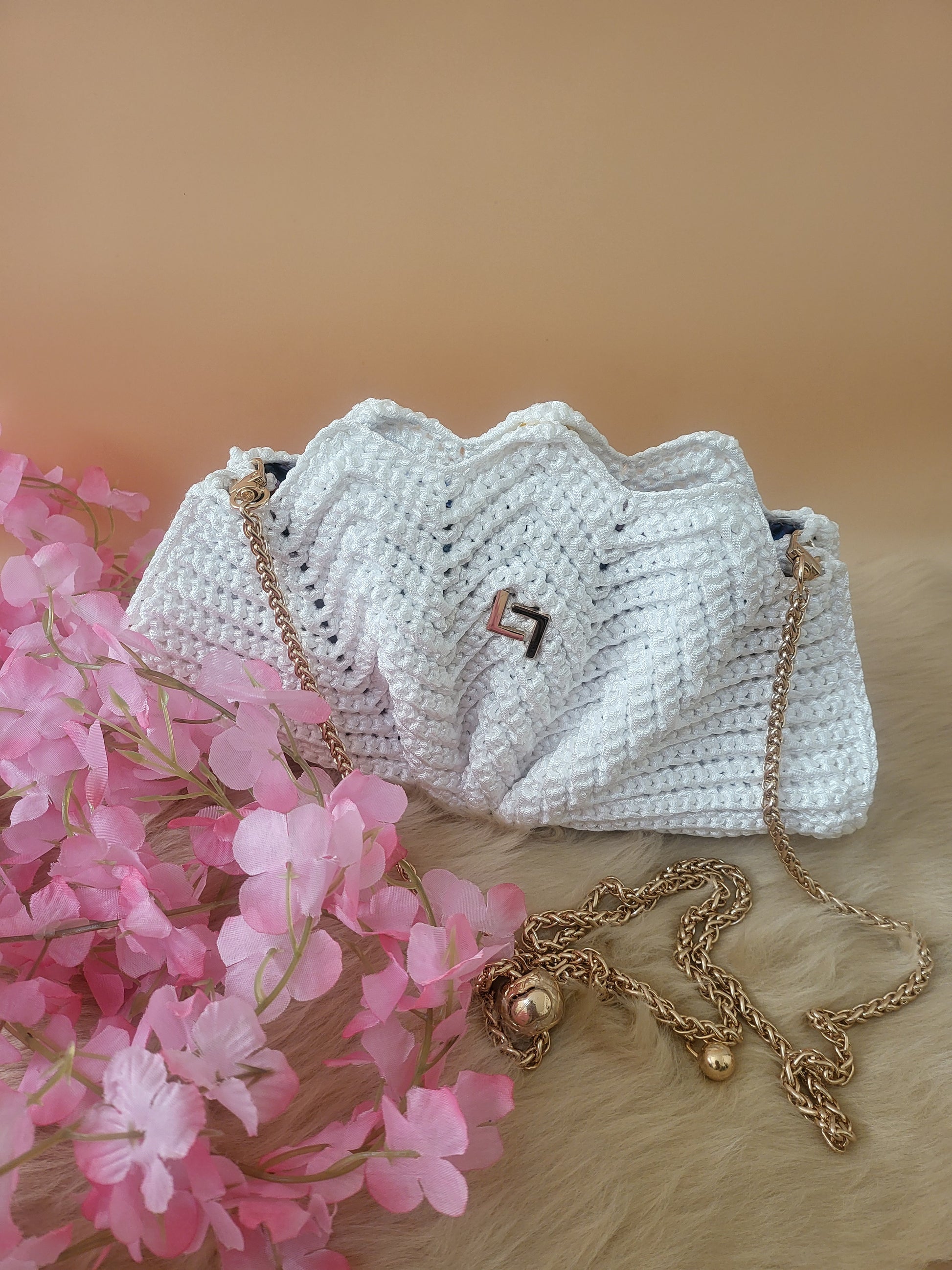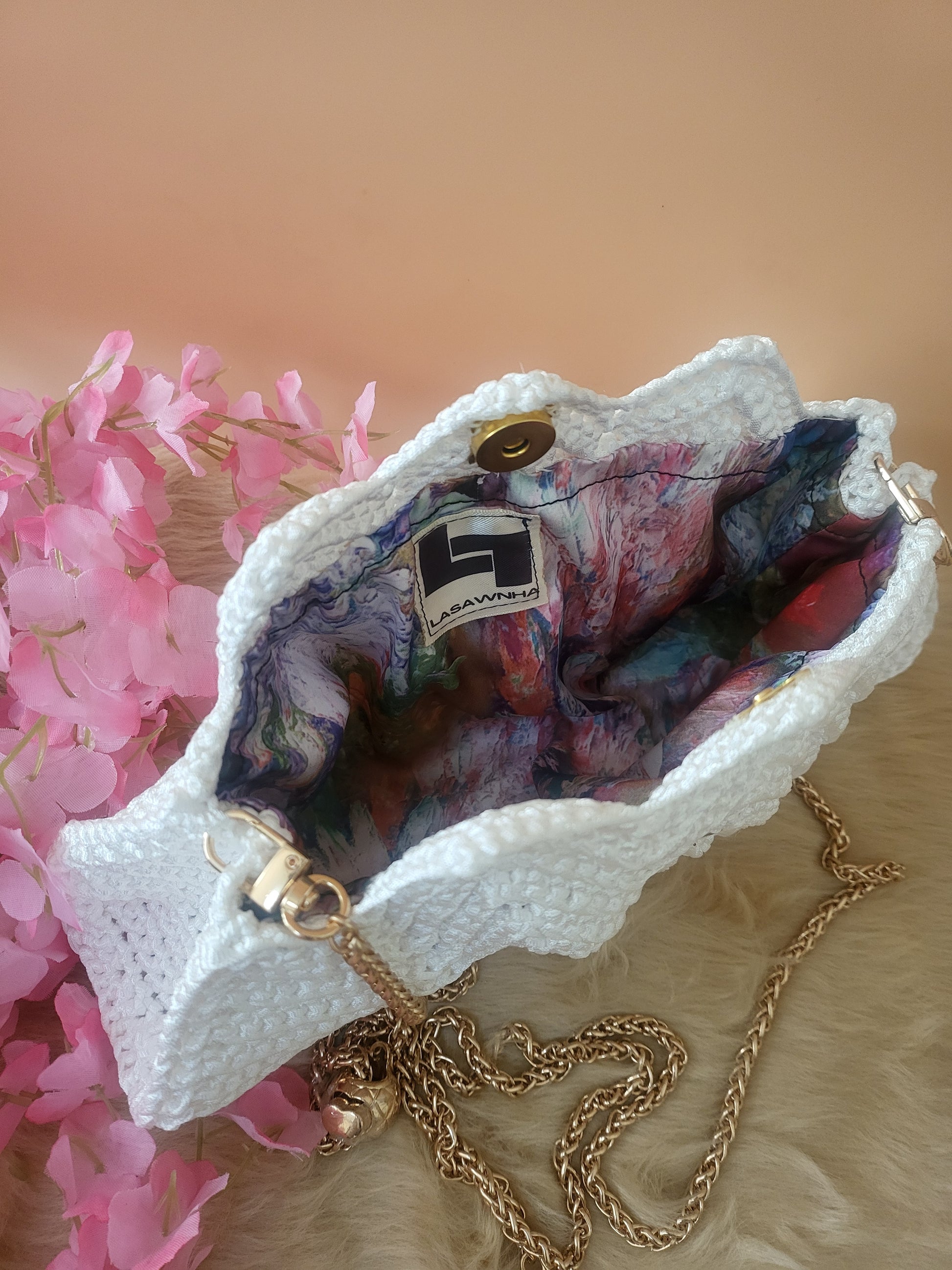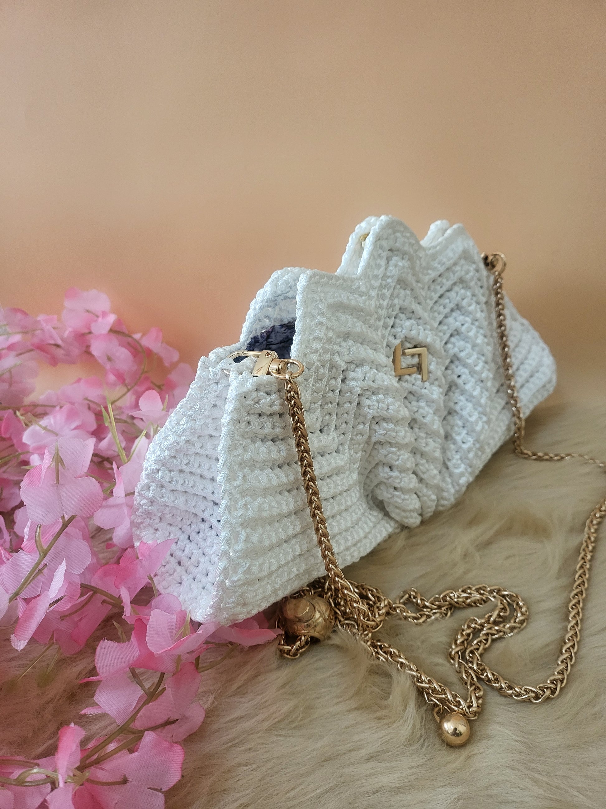 Meet the LISBON LUXE, a handmade crochet bag in crisp white, shaped like a delicate shell. Cute yet surprisingly spacious, it easily fits your phone, wallet, keys, sunglasses, and more. Perfect for beach days, brunch, or a stylish night out. A statement piece that blends charm with practicality!