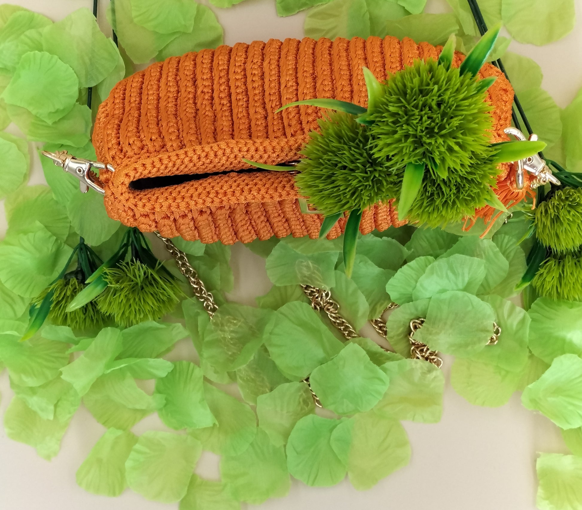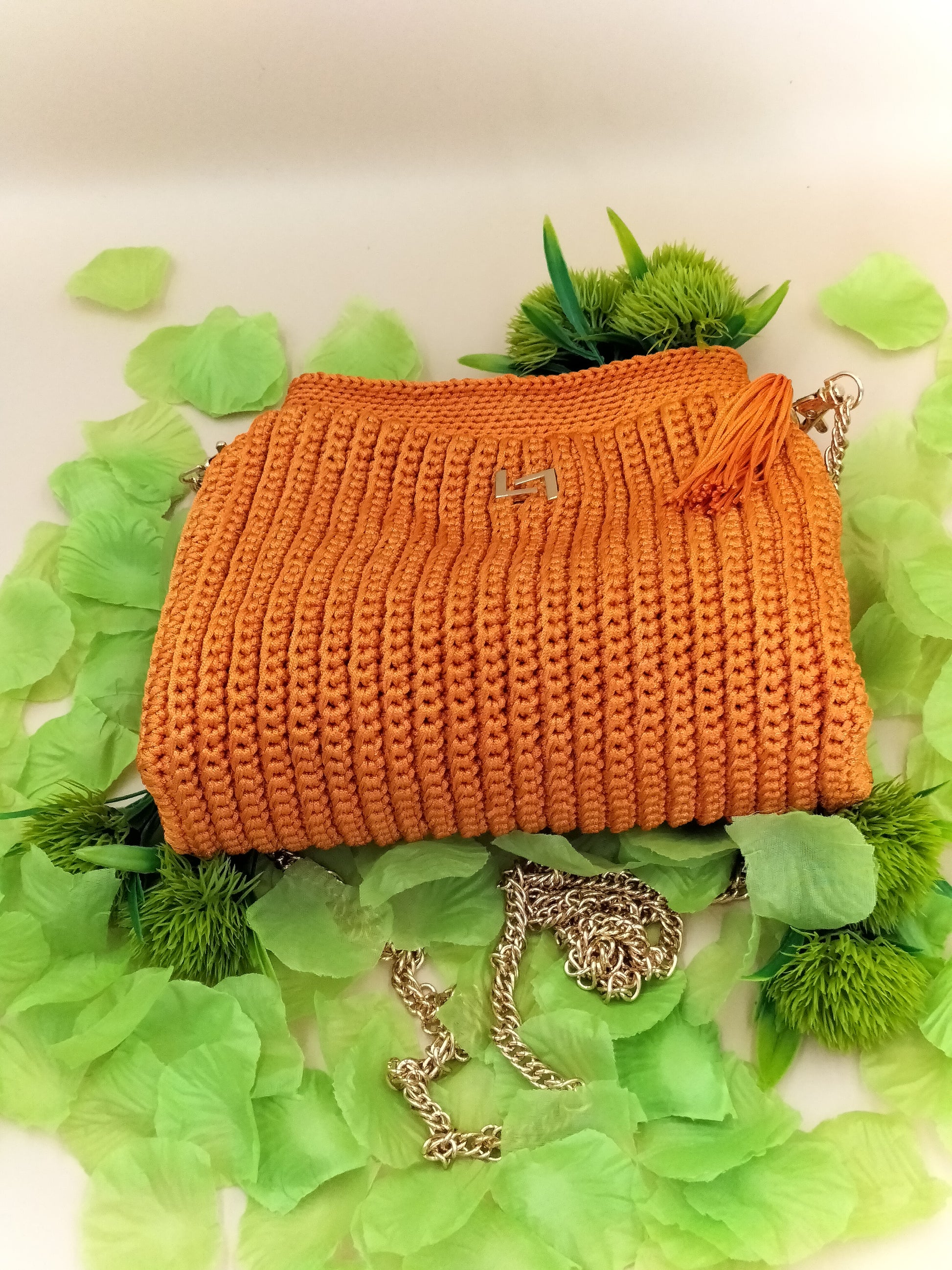 Product Description: Introducing the upgraded TASHA PURSE - a testament to timeless elegance and versatility in crochet fashion. Crafted with utmost care and precision, this exquisite purse is now elevated with durable polyester yarn, ensuring it withstands the test of time while retaining its chic appeal. Designed for all occasions, from casual outings to enchanting date nights, the TASHA PURSE features a sophisticated chain strap, allowing it to be worn effortlessly as a shoulder bag.